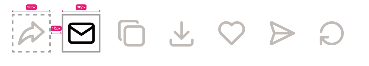 ② メールアイコンの位置は、まとまり画像の「上から0px」「左から40px(30+10)」のところにある