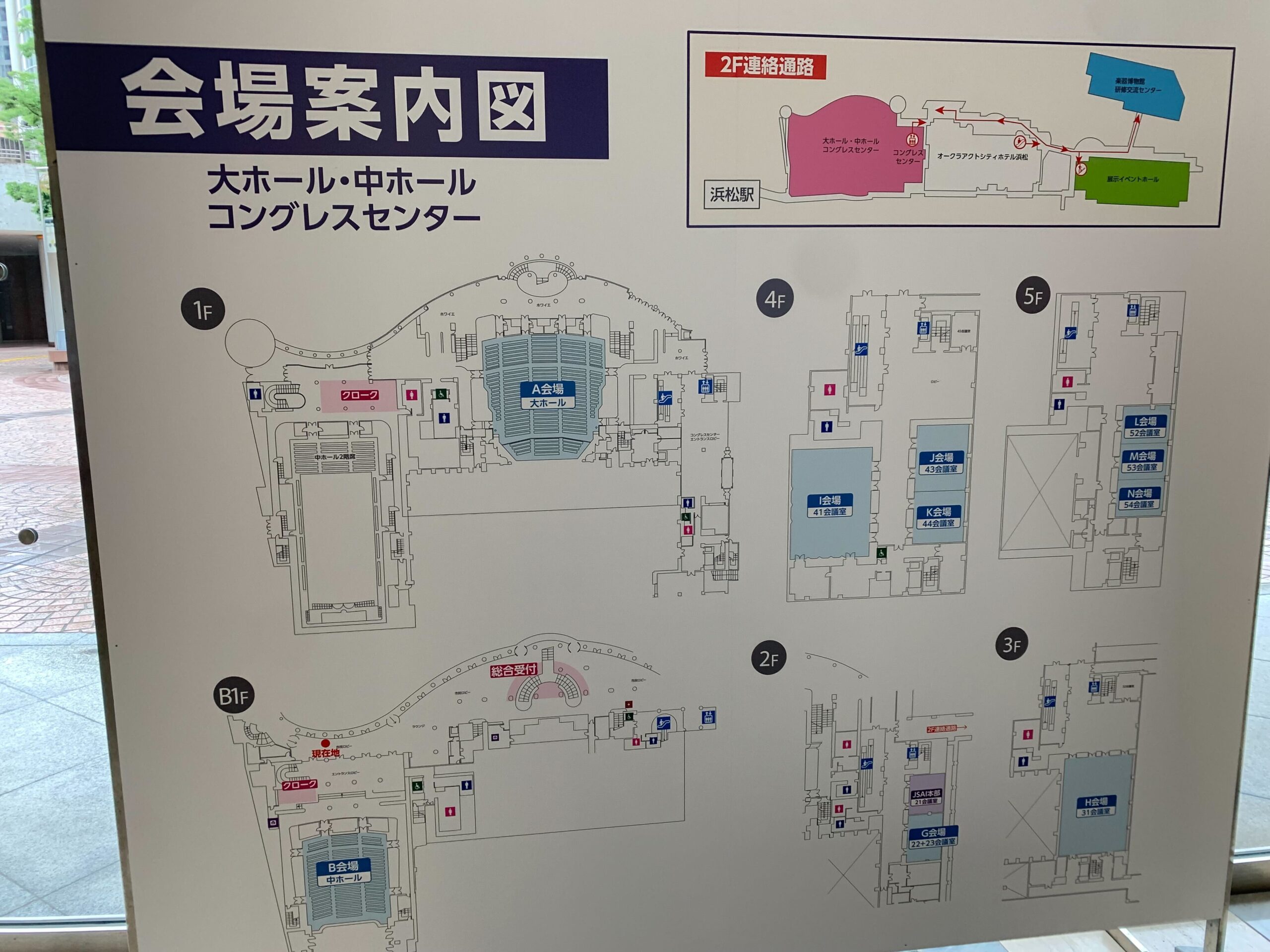 以下は会場案内図を撮影したものです。駅近くの会場は普段は大きいコンサートが開催できるような広い施設でした。そのB1Fから5Fまでで同時に発表が行われ、かつ離れたイベントホールでポスターセッションも開催されており、コンテンツ量の多さを改めて実感しました。同一時間帯の別セッションで気になる題目があるときなどは、かなり急いで移動しないと次に間に合うか怪しい場面も…笑