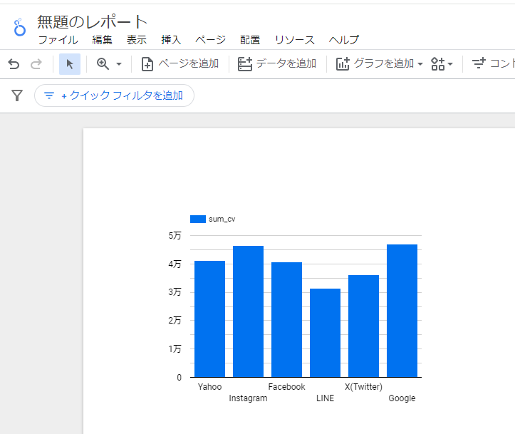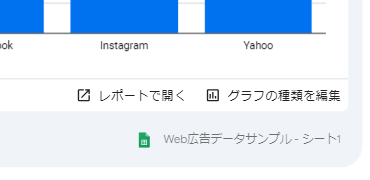 続いて「レポートで開く」をクリックすると、別ウィンドウでLookerStudioのレポート画面が開いて、同じグラフが出力されました