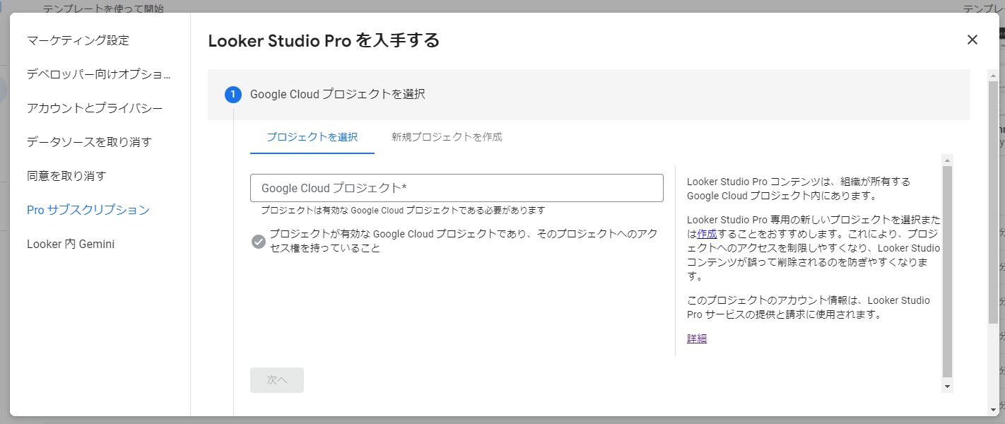 Gemini in Looker は Looker Studio に組み込まれており、利用するためには、Looker Studio Proのサブスクリプションが必要です。Looker Studio Proは、ユーザー 1 人あたりの月額料金 9 ドルの料金体系のようですが、組織での利用の場合、30 日間無料で試すことができるため、今回はこちらを利用しています。