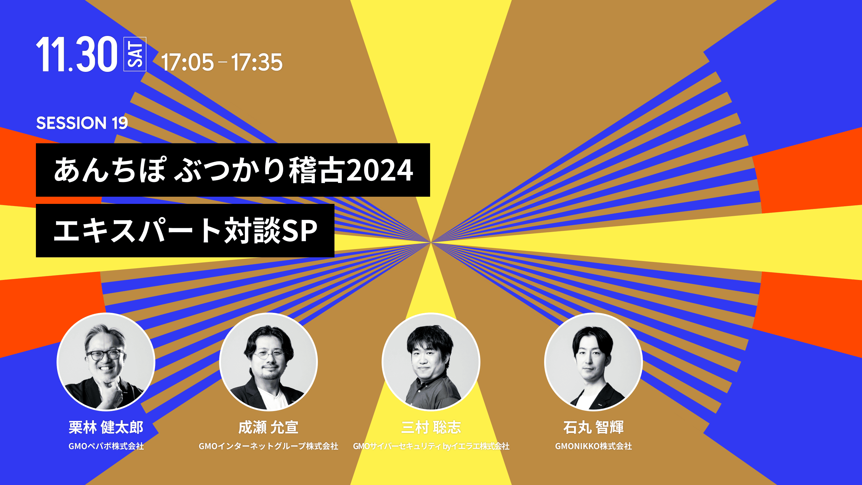 今年もあんちぽぶつかり稽古を開催します。今回はGMOインターネットグループを技術で牽引するエキスパートたちが集結。GMOペパボの取締役CTOの栗林(あんちぽ)を司会に迎え生成AIをはじめ幅広いテーマについて議論します。エキスパートたちが自身の活動やキャリアパスを語り、技術やトレンドに対する洞察を深める場となります。さらに、エキスパート同士が互いに質問し合うことで、新たな視点や学びが得られる白熱の対談に期待が高まります。